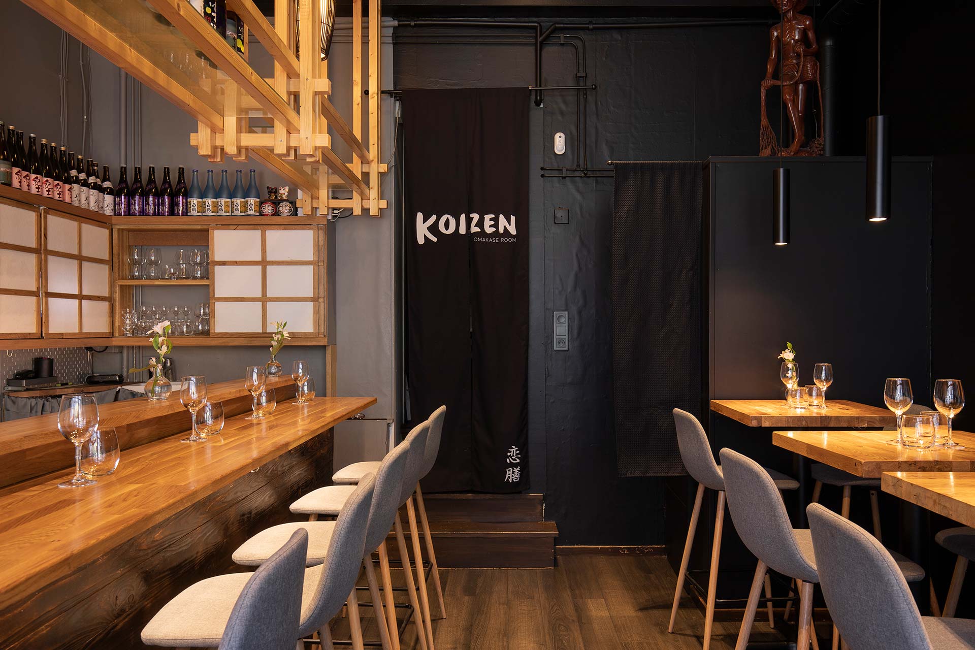 Hur får man en enkel sushi-take away att bli en exklusiv liten Omakase-restaurang? Att förstärka upplevelsen av ett varumärke genom arkitektur och design är uppdrag vi gillar. Detta har vi gjort för Koizen, vars koncept bygger på gästens tillit till kockens förmåga att servera en matupplevelse utöver det vanliga. För Koizen på Aschebergsgatan 26 i Göteborg ritade vi nya väggar, fast- & lös inredning, arbetade med dekor, ljussättning och färgsättning.