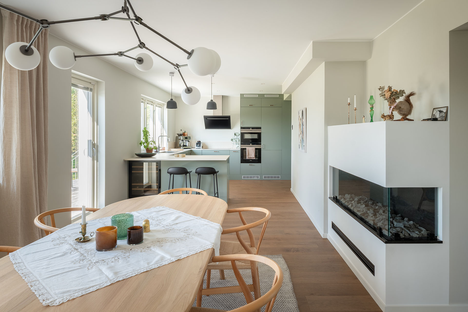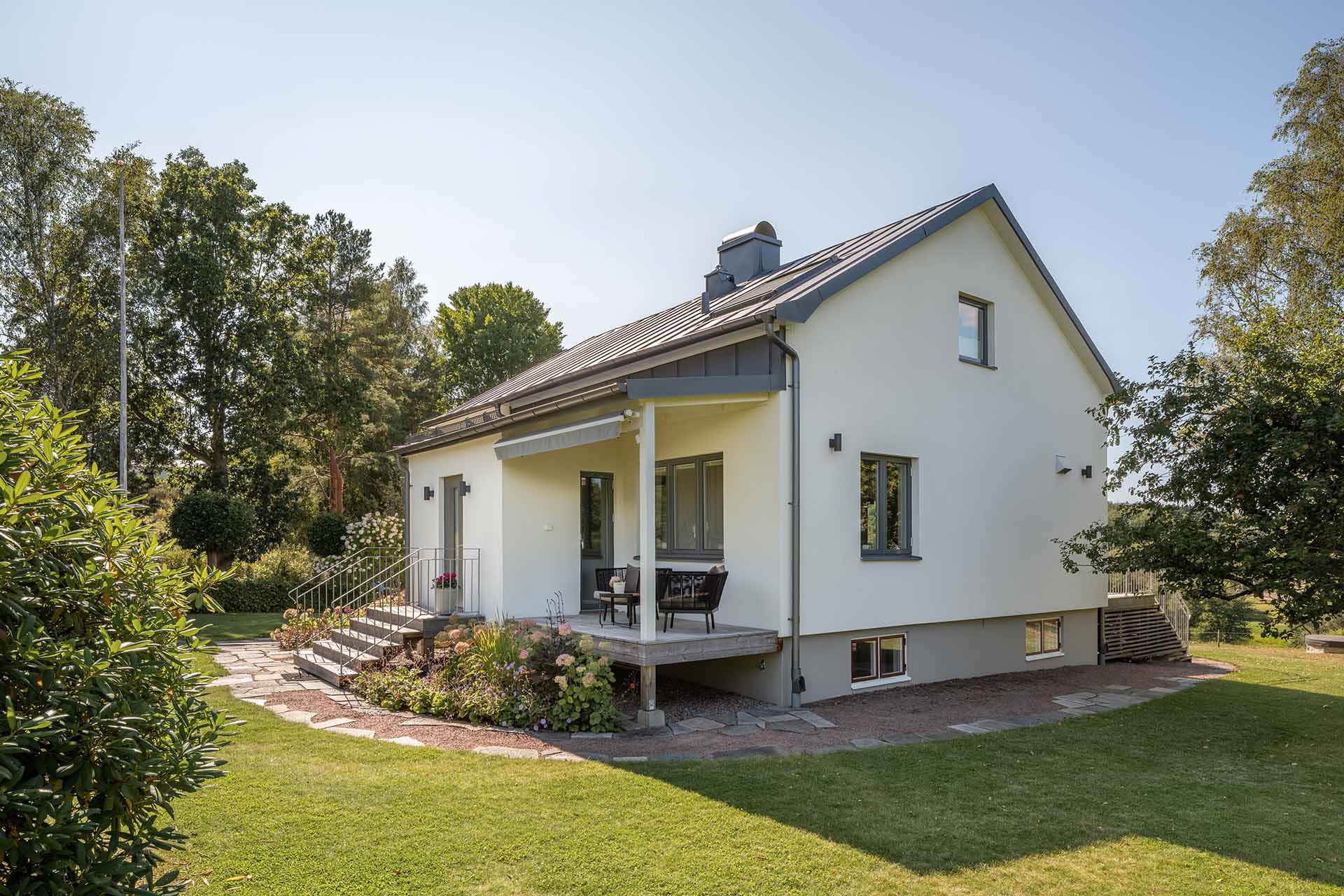 Fastigheten har moderniserats med fokus på komfort och funktionalitet. Genom att lyfta fram husets karaktär och lekfulla egenheter har en nutida helhet vuxit fram. Sociala ytor, kök och badrum har uppgraderats med hög standard och omsorg om detaljer för ökad livskvalitet i vardagen.